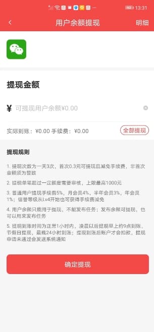 企鹅互助任务收入满0.3元即可申请,同时支持微信和支付宝,普通用户手续费为5%!