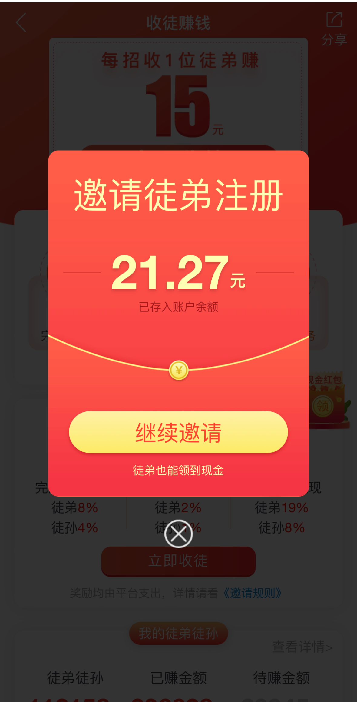 4. 收徒双赢增收益:平台鼓励用户通过邀请好友加入来扩大收益。用户只需分享自己的邀请链接或二维码,当好友通过链接注册并完成指定任务后,双方均可获得额外奖励。